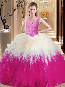 Royal Blue Zipper High-neck Lace Vestidos de Quinceanera Tulle Sleeveless