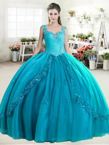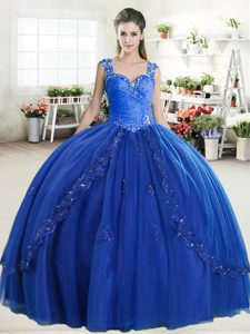 Royal Blue Zipper Sweetheart Beading Sweet 16 Dresses Organza Sleeveless