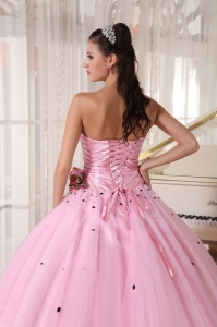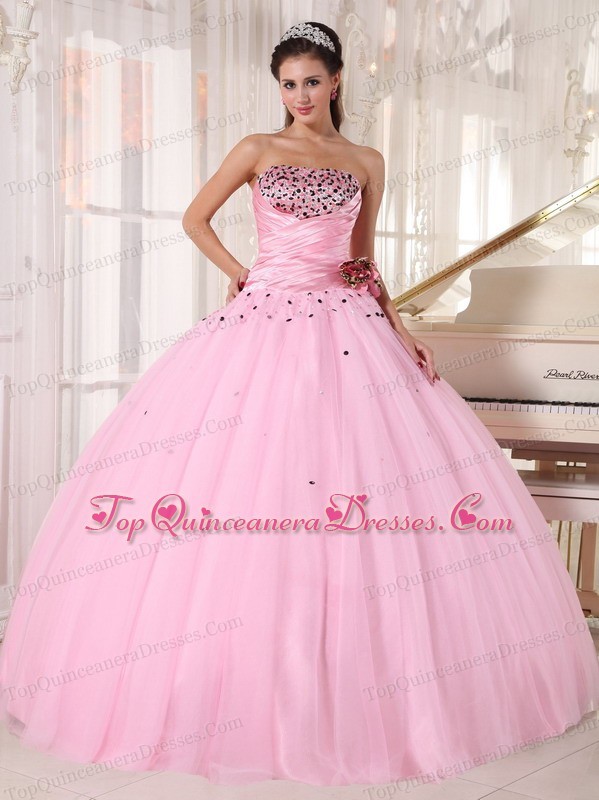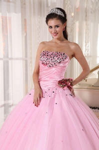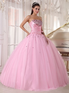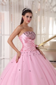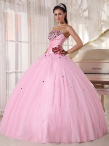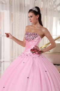 Ruch Baby Pink Beaded Quinceanera Dress Ball Gown Tulle