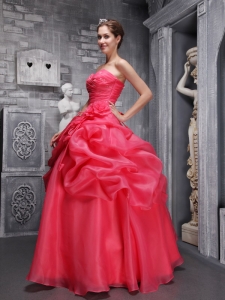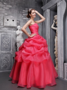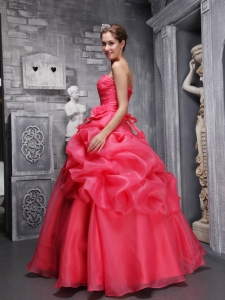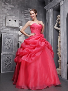 anne robinson quinceanera dresses, Ruch Coral Red Quinceanera Dresses Organza for Sweet 16
