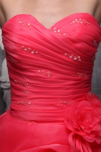 amazing coral red junior quinceanera gown,