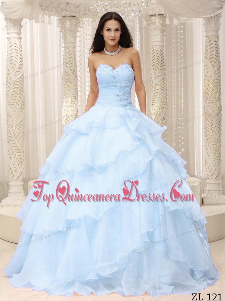 Ruched Bodice Hand Made Flowers Decorate Waist For Quinceanera Dress