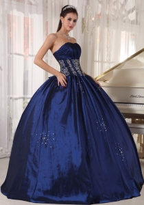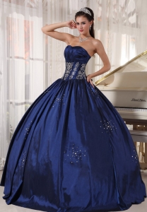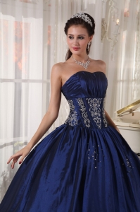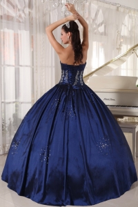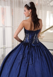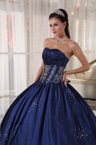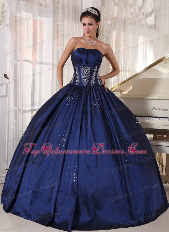 Ruched Embroidery Navy Blue Quinceaneras Ball Gowns