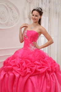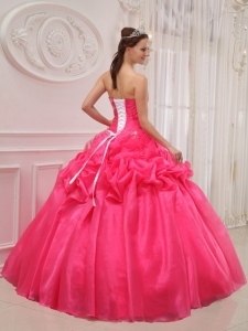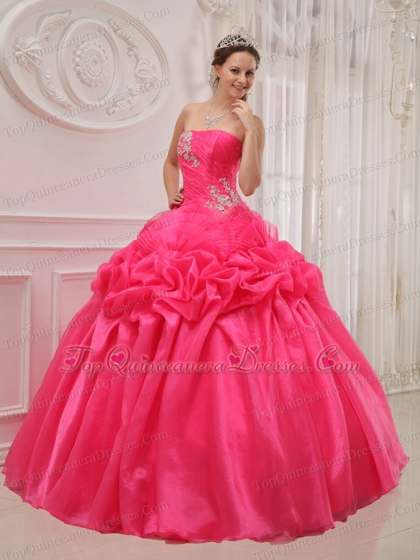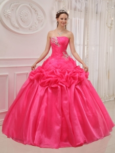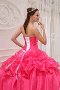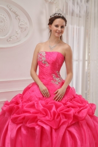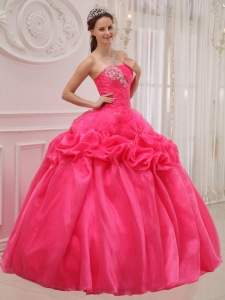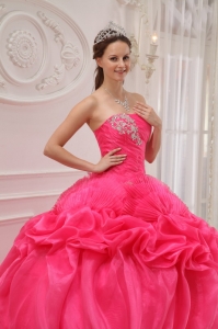 Ruched Hot Pink Strapless Beading Ball Gown Quinceanera Dress