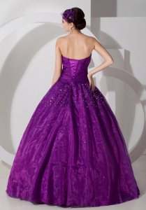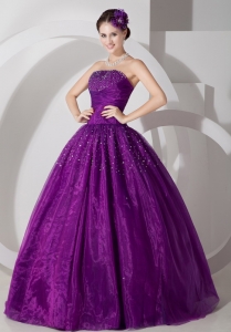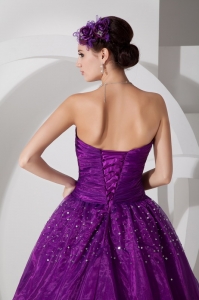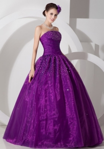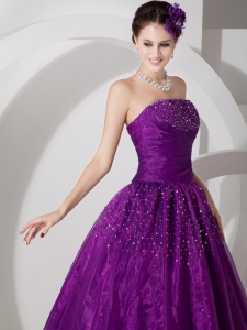 Ruched Purple Strapless Dresses for Quinceanera Beading