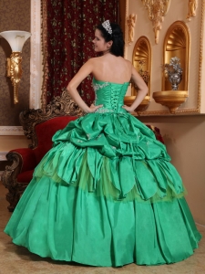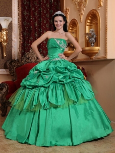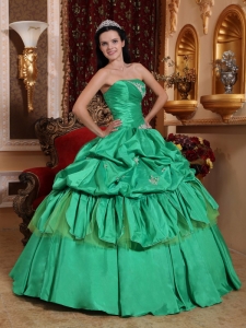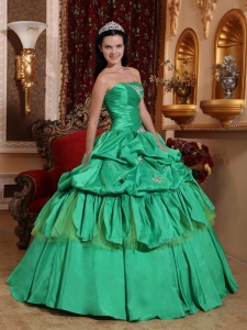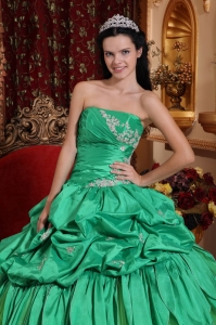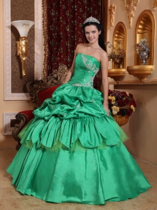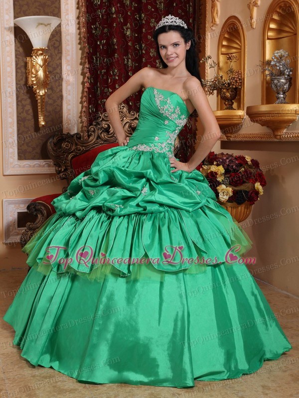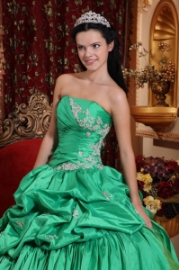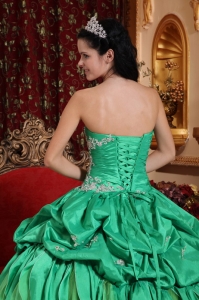 Ruched Quinceanera Dress Green Appliques for Sweet Fifteen