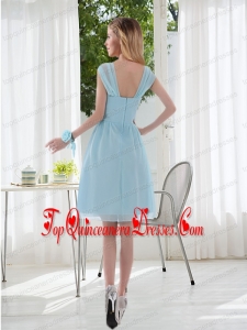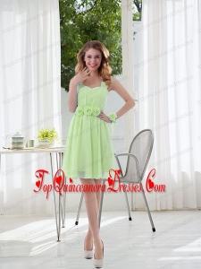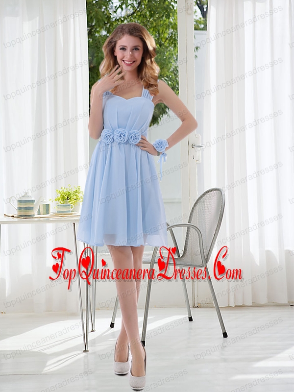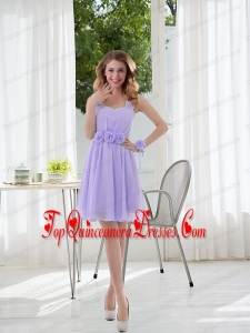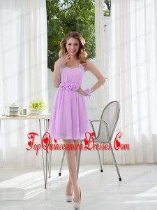 Ruching and Hand Made Flowers Straps 2015 Chiffon Dama Dress