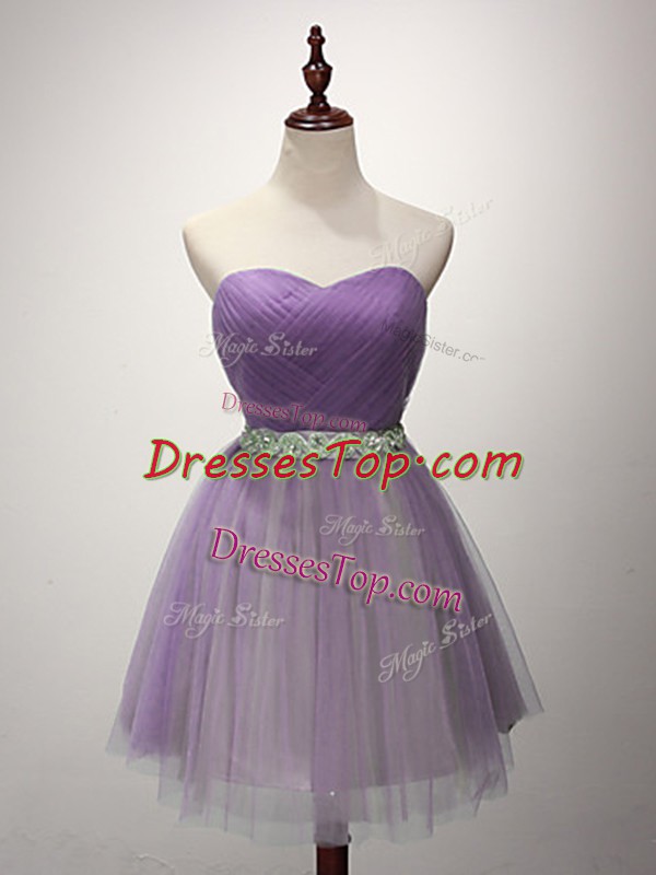 Ruching Vestidos de Damas Lavender Lace Up Sleeveless Mini Length