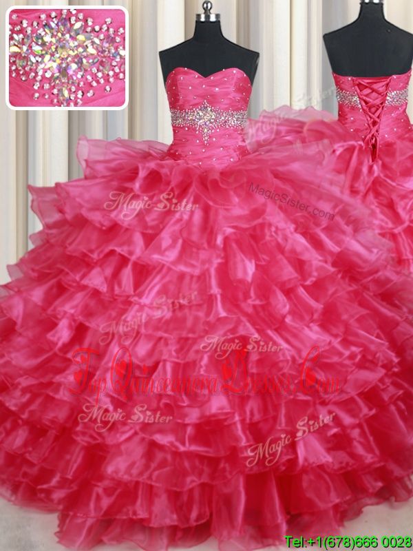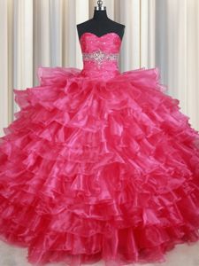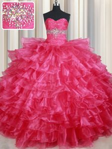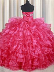 Ruffled Ball Gowns Sweet 16 Dress Coral Red Sweetheart Organza Sleeveless Floor Length Lace Up