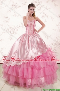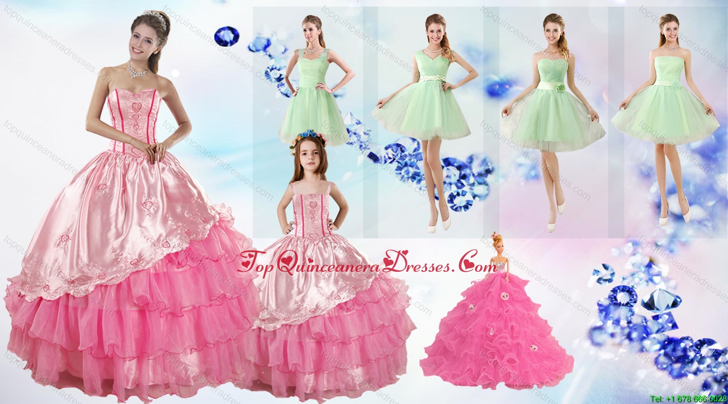 Ruffled Layers Sweetheart Quinceanera Dress and Ruching Apple Green Dama Dresses and Rose Pink Little Girl Dress