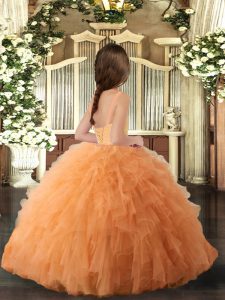 Ruffles Little Girls Pageant Gowns Coral Red Lace Up Sleeveless Floor Length
