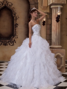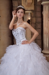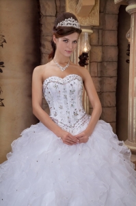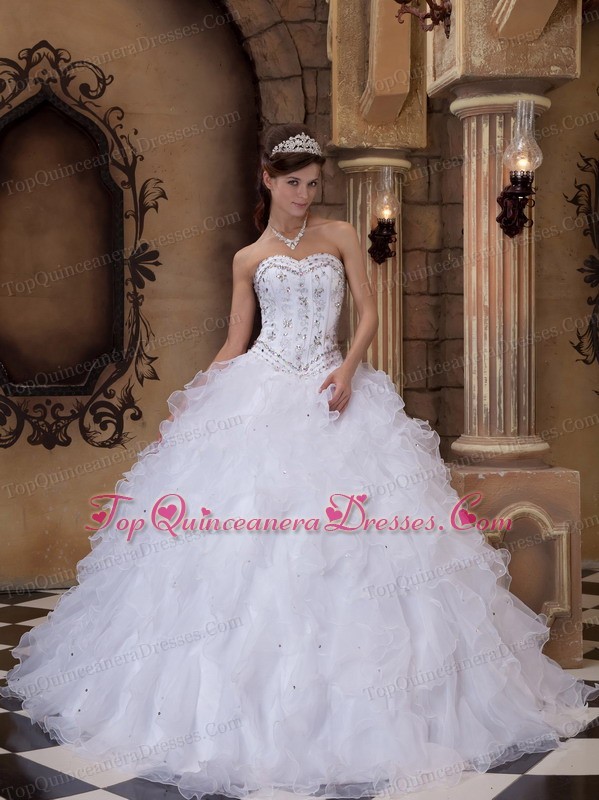 gorgeous outlet quinceanera gowns, Ruffles Organza Beading White Quinceanera Ball Gown Dress