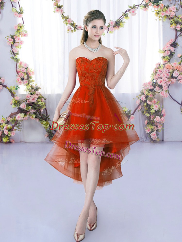 Rust Red A-line Sweetheart Sleeveless Tulle High Low Lace Up Lace Dama Dress for Quinceanera