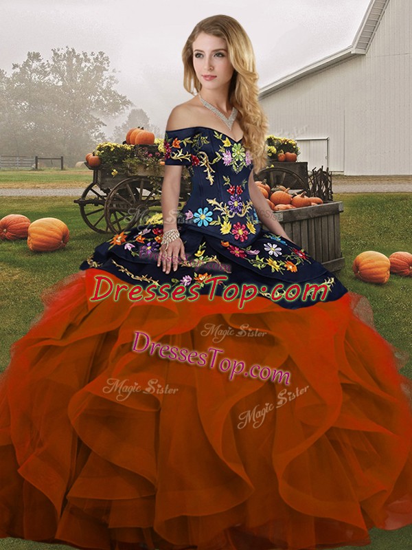 Rust Red Lace Up 15th Birthday Dress Embroidery and Ruffles Sleeveless Floor Length