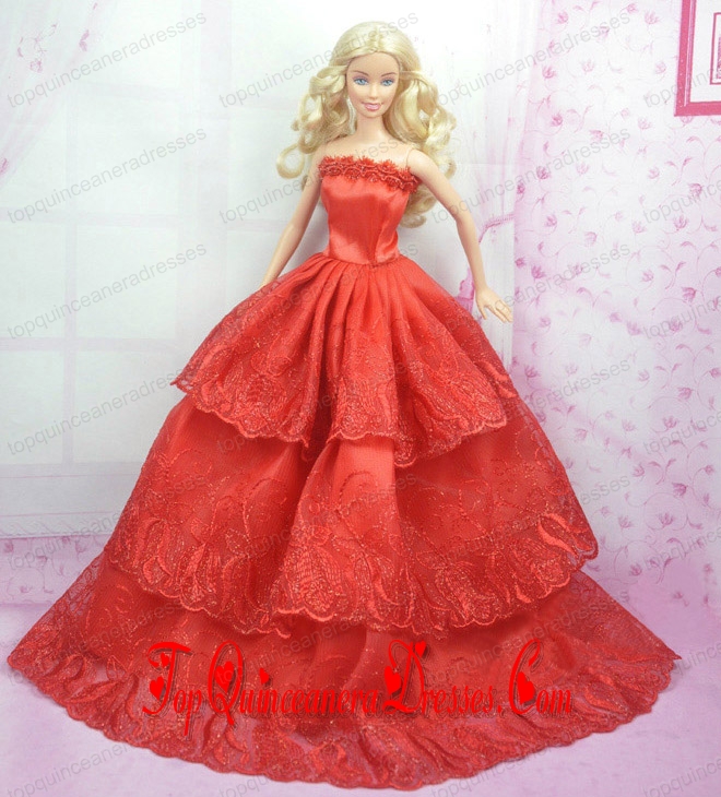 Rust Red Princess Dress With Embroidery Gown For Barbie Doll