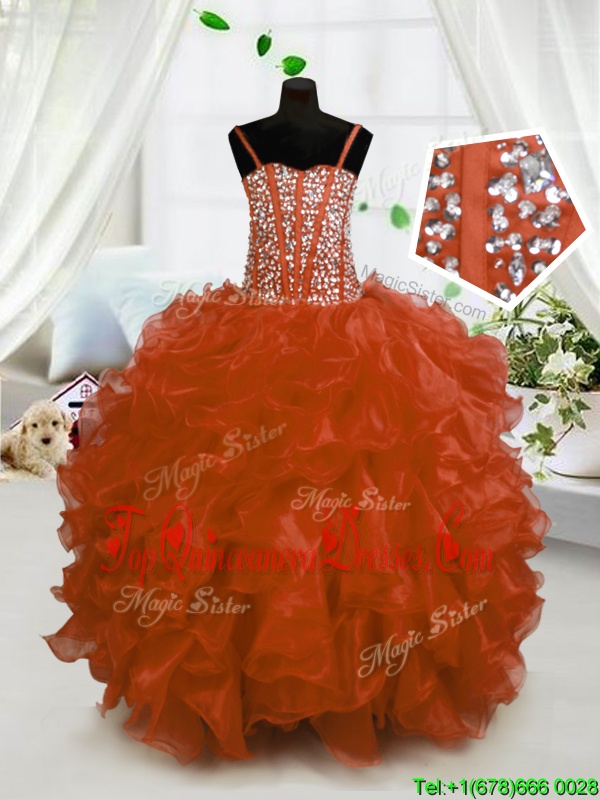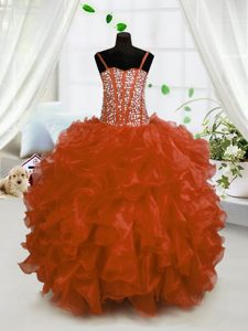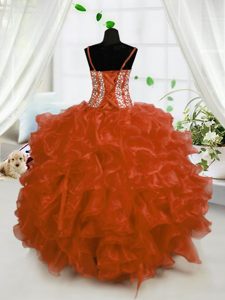 Rust Red Sleeveless Organza Lace Up High School Pageant Dress for Party and Wedding Party