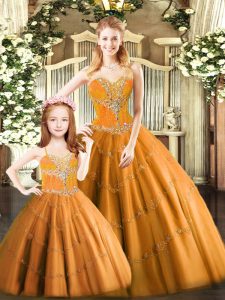 Rust Red Sweetheart Lace Up Beading Quinceanera Dresses Sleeveless
