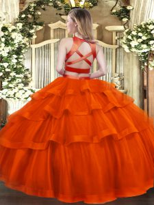 Rust Red Two Pieces Ruffled Layers Sweet 16 Dresses Criss Cross Tulle Sleeveless Floor Length