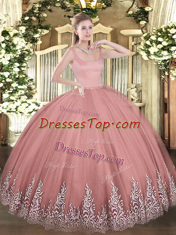Rust Red Zipper Straps Appliques Sweet 16 Dresses Tulle Sleeveless
