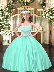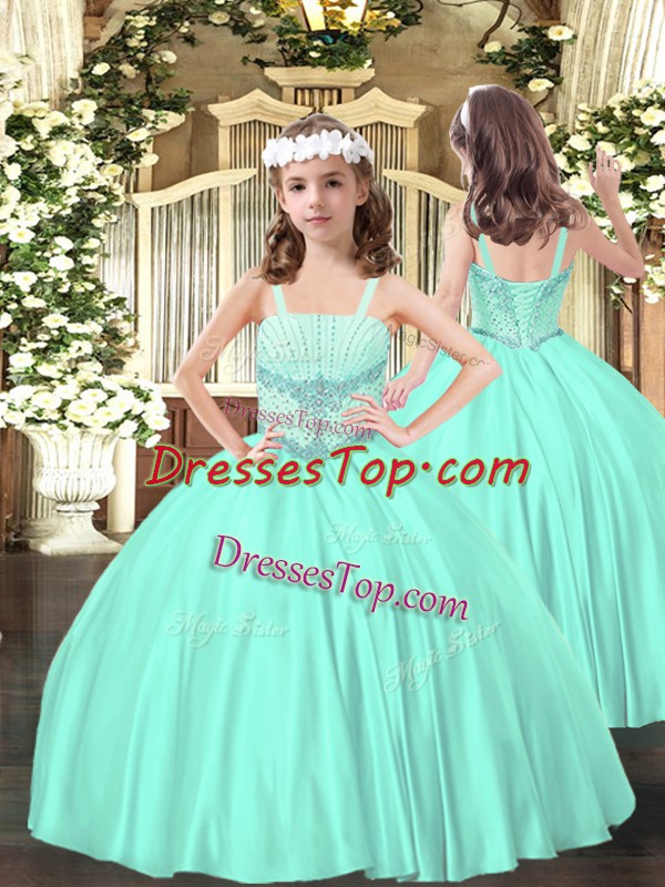 Satin Sleeveless Floor Length Kids Pageant Dress and Beading