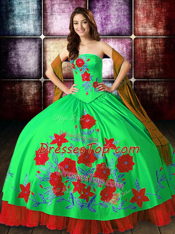 Satin Sleeveless Floor Length Quinceanera Gowns and Embroidery