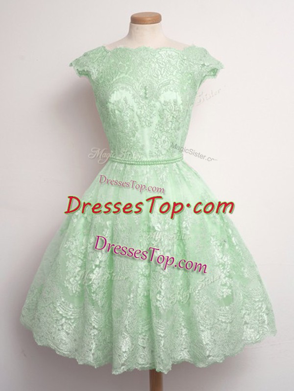 Scalloped Cap Sleeves Lace Quinceanera Dama Dress Lace Lace Up