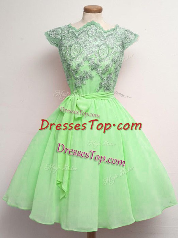 Scalloped Cap Sleeves Quinceanera Court of Honor Dress Knee Length Lace and Belt Chiffon