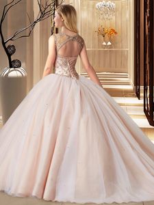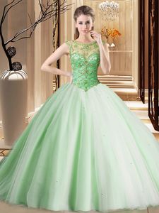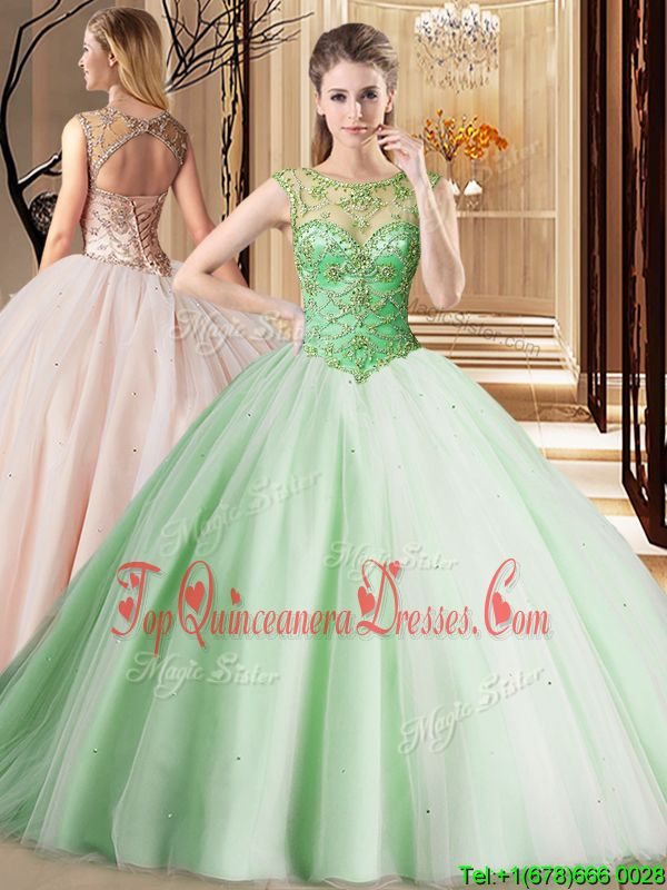 Scoop Apple Green Sleeveless Beading Lace Up Quinceanera Gown