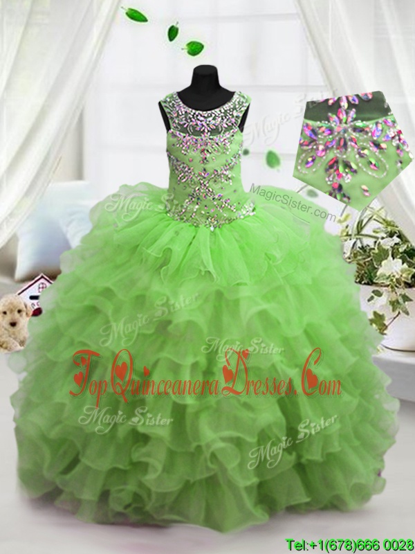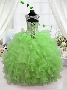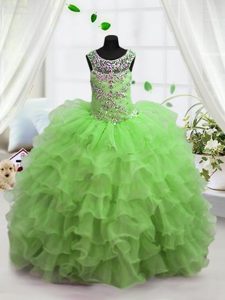 Scoop Apple Green Sleeveless Floor Length Beading and Ruffled Layers Lace Up Little Girl Pageant Gowns