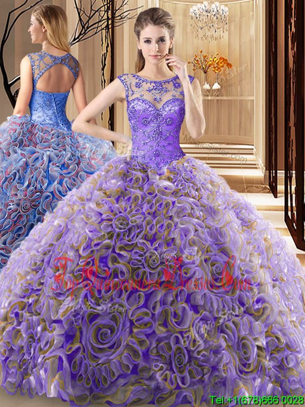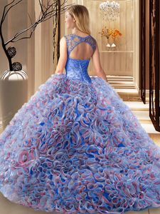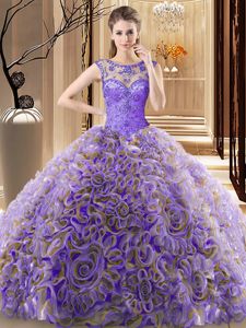 Scoop Ball Gowns Sleeveless Multi-color Quince Ball Gowns Brush Train Lace Up