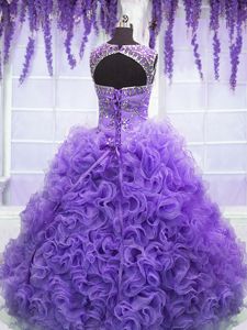 Scoop Beading and Ruffles Vestidos de Quinceanera Lavender Lace Up Sleeveless Floor Length