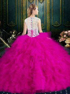 Scoop Blue Tulle Zipper Quinceanera Gowns Sleeveless Floor Length Lace and Ruffles