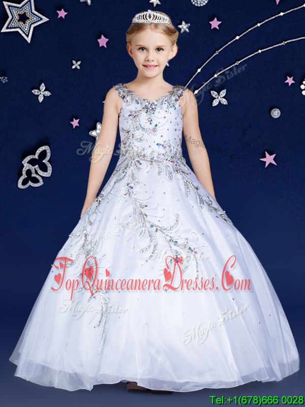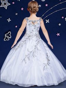 Scoop Floor Length Ball Gowns Sleeveless White Little Girls Pageant Gowns Zipper