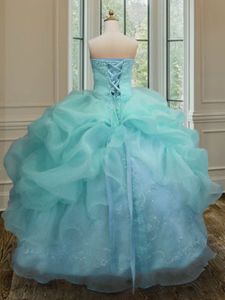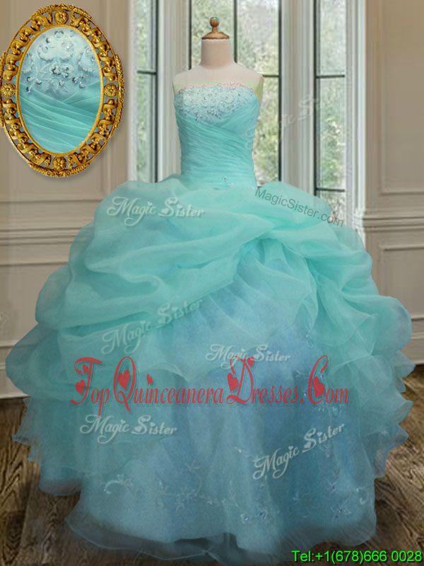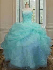 Scoop Floor Length Quinceanera Dress Organza Sleeveless Beading and Pick Ups