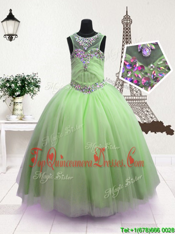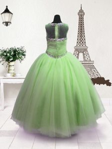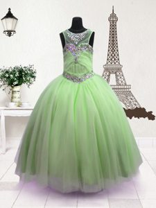 Scoop Green Sleeveless Beading Floor Length Pageant Gowns For Girls