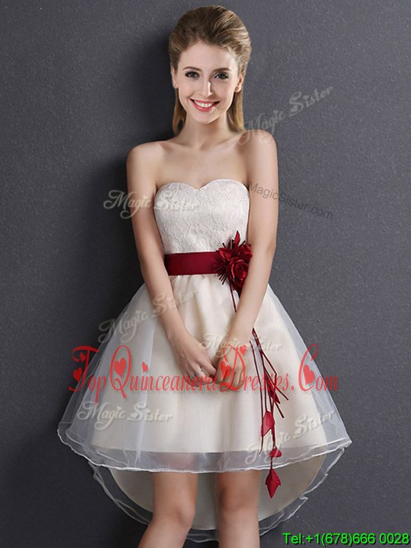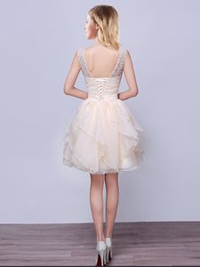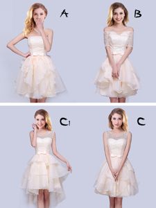 Scoop High Low Champagne Quinceanera Court of Honor Dress Organza Sleeveless Lace and Ruffles
