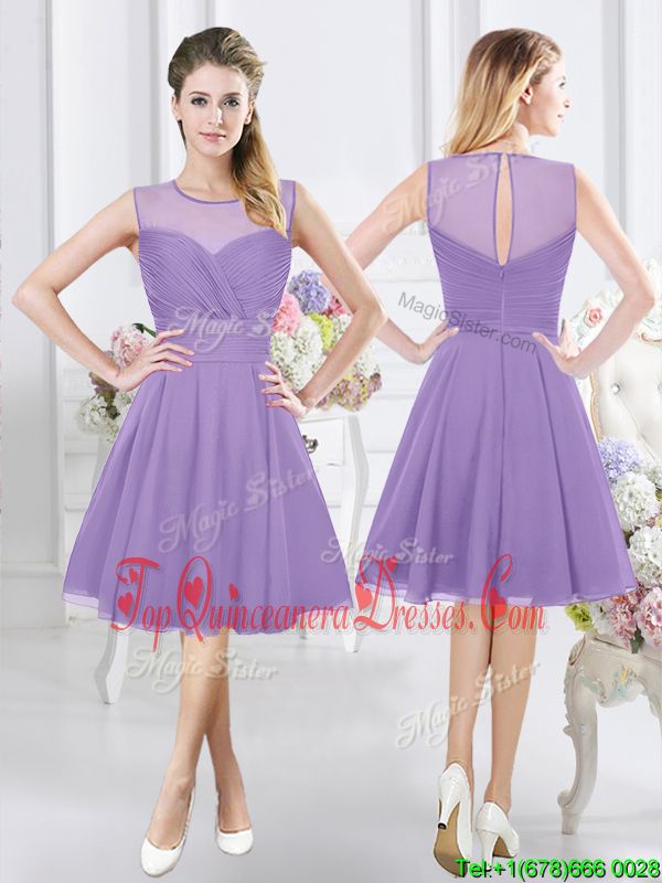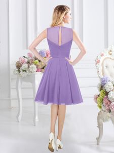 Scoop Lavender Sleeveless Ruching Knee Length Vestidos de Damas