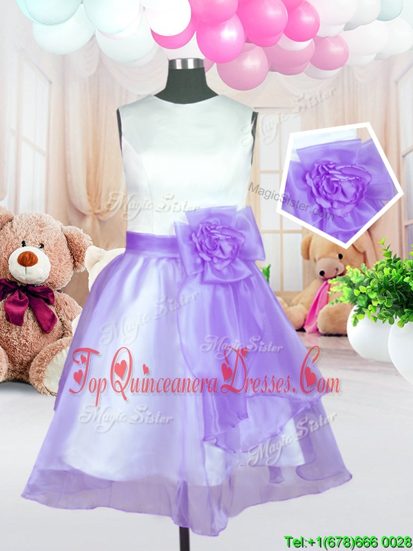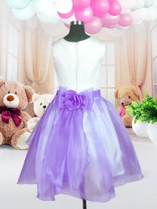 Scoop Lilac Zipper Pageant Dress for Teens Hand Made Flower Sleeveless Knee Length