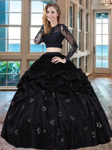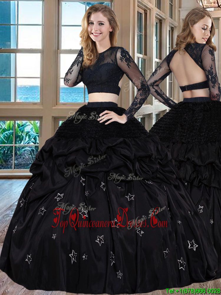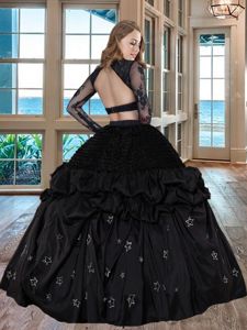 Scoop Long Sleeves Backless Quinceanera Dress Black Taffeta