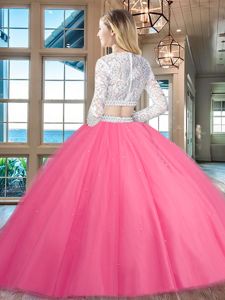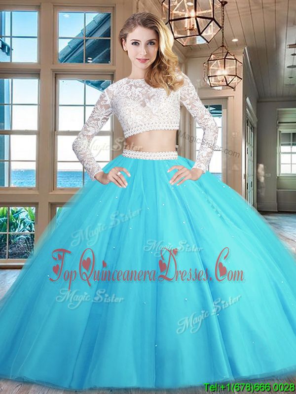 Scoop Long Sleeves Zipper Floor Length Beading and Lace 15th Birthday Dress