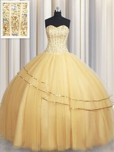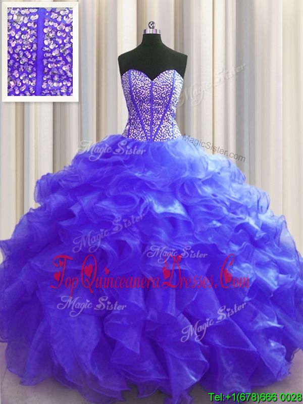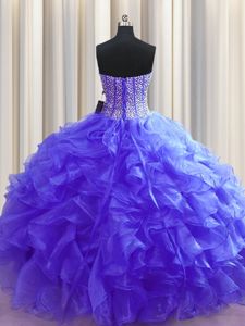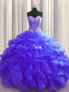 Scoop Navy Blue Sleeveless Beading and Pick Ups Floor Length Quinceanera Gowns