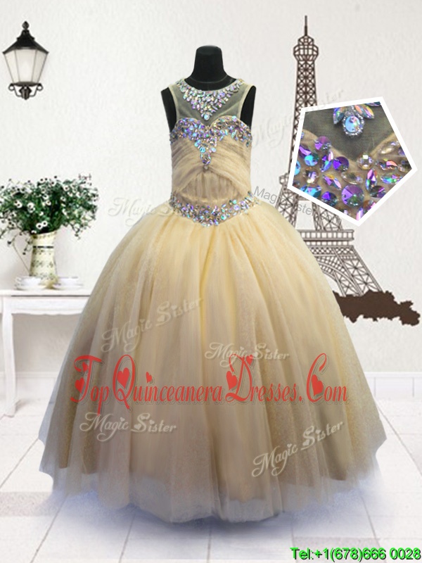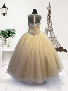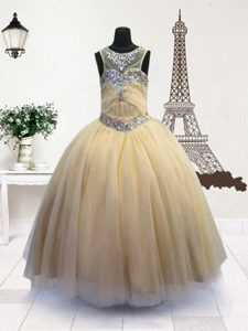 Scoop Organza Sleeveless Floor Length Kids Pageant Dress and Beading