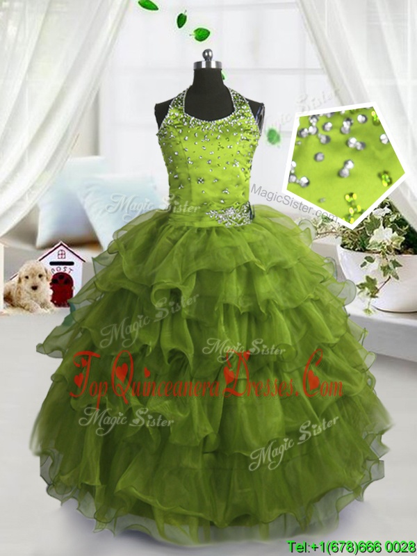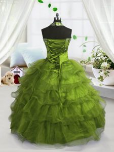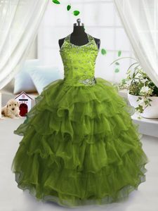 Scoop Organza Sleeveless Floor Length Winning Pageant Gowns and Beading and Ruffled Layers