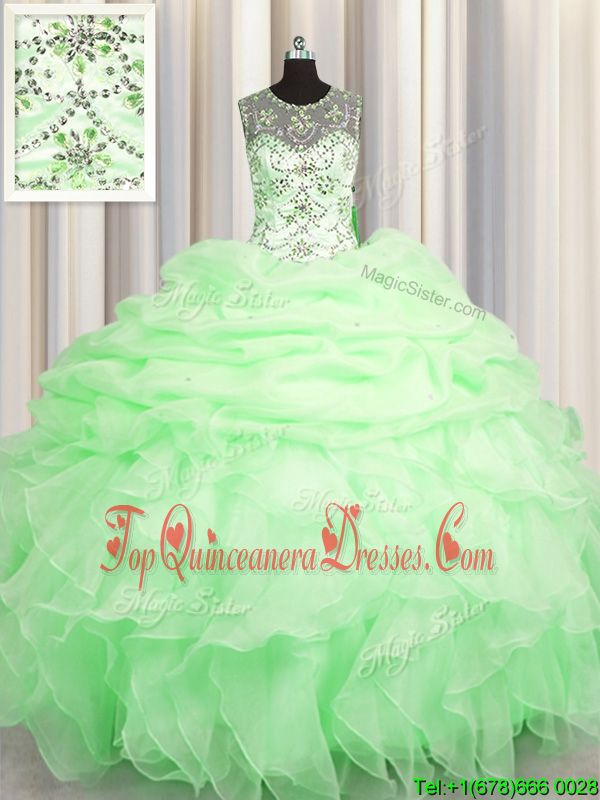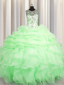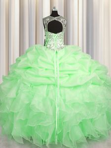 Scoop See Through Sleeveless Floor Length Beading and Ruffles and Pick Ups Lace Up 15th Birthday Dress with