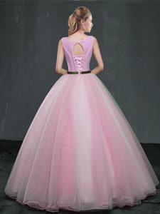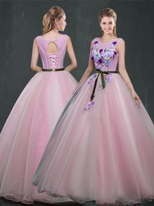 Scoop Sleeveless Appliques Lace Up Quinceanera Gown