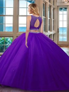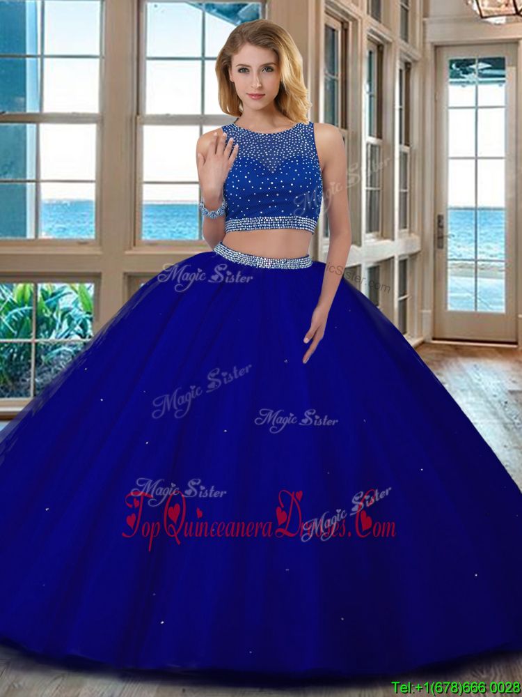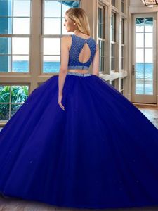 Scoop Sleeveless Backless Ball Gown Prom Dress Royal Blue Tulle