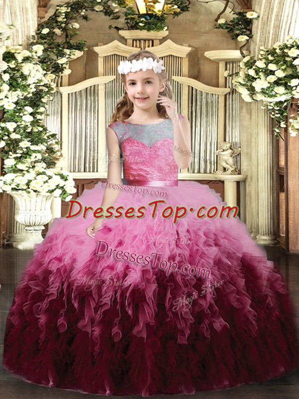Scoop Sleeveless Backless Little Girl Pageant Gowns Multi-color Tulle