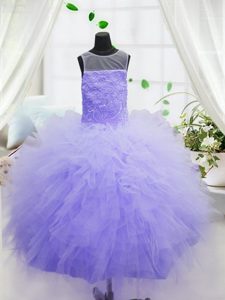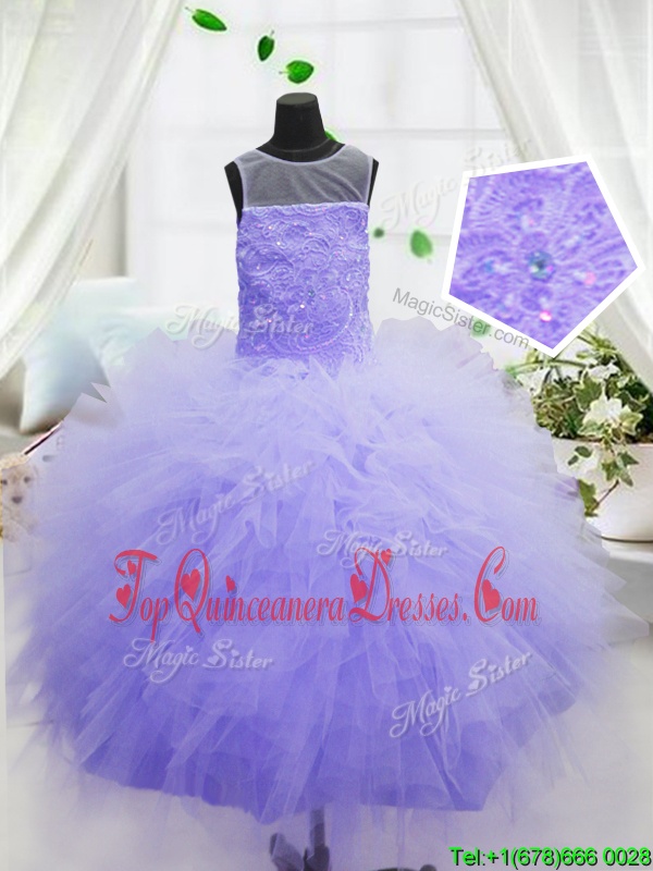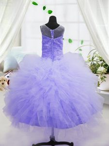 Scoop Sleeveless Beading and Ruffles Zipper Little Girls Pageant Dress