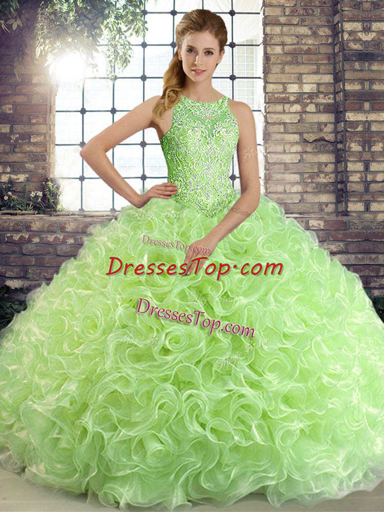 Scoop Sleeveless Fabric With Rolling Flowers 15th Birthday Dress Beading Lace Up
