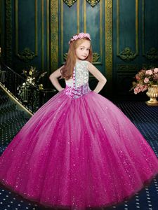 Scoop Sleeveless Floor Length Beading and Appliques Clasp Handle Winning Pageant Gowns with Eggplant Purple